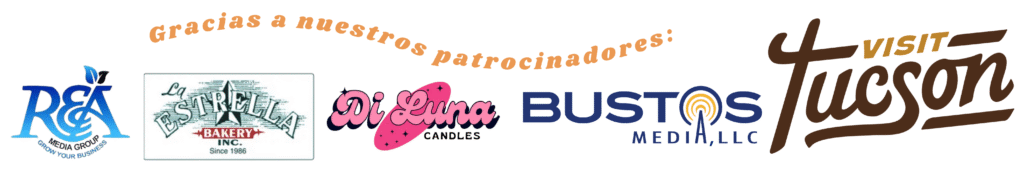 Todo esto es posible gracias al apoyo de nuestros patrocinadores: Visit Tucson, REA Media Group, La Estrella Bakery, Bustos Media (la compañía matriz de las estaciones de radio Urbana y La Poderosa), y Di Luna Candles, además del apoyo invaluable de la Galería Mitotera, una tienda de arte, regalos y talleres. Nuestros patrocinadores no solo están haciendo aportaciones, están mostrando su apoyo a la comunidad hispana de Tucson.